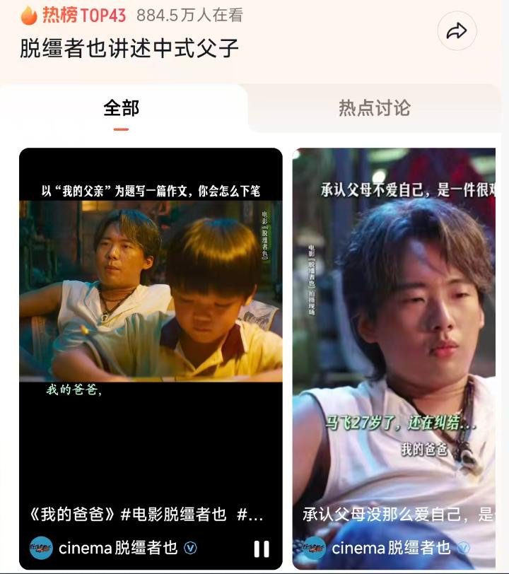 另一方面《脱缰者也》在宣传期做了很多切片,好几个切片都瞄准了父子关系,尤其是专门剪辑出郭麒麟说“我的爸爸爱不爱我”之类的台词,如果说这不是为了刺激德云社粉丝,估计也没人信。