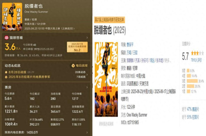 可如果一部“粉丝向电影”没能得到粉丝支持,那结局一定很惨,不仅口碑会扑街,票房同样会扑街,而且是扑到没眼看那种,很不幸,看起来《脱缰者也》似乎就是个结果。